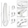 Performance Maxx Clear Extension Kit from California Exotic Novelties. The Performance Maxx Clear Extension Kit is a revolutionary tool designed to enhance and intensify your intimate encounters. Featuring a solid ultra soft head, measuring 3.75 inches, this extension provides both additional length and girth, ensuring a deeply satisfying experience for you and your partner. Crafted with a stretchy and comfortable transparent design, this extension kit accentuates your natural assets while maintaining a realistic feel. Its life like hollow design is complemented by a built in scrotum strap, adding stability to your experience. The inclusion of three stoppers allows for a tailored fit, catering to individual preferences and ensuring maximum comfort. The Performance Maxx Clear Extension Kit is made from a body safe, unscented, and phthalate free material. This commitment to quality ensures a worry free, enjoyable experience with every use. This kit is not just an extension. It is a gateway to exploring new dimensions of pleasure and empowering your intimate moments. Specifications: SKU SE-1632-50-3. Color: Clear. 1 Year Warranty. Features: Wearable, Phthalate free. Waterproof. Material type: Thermoplastic Elastomers TPE. Measurements: 5.75 inches hollow shaft. 1.75 inches inner diameter. 9 inches by 2.25 inches overall. .75 inch by 1 inch tip stopper. .75 inch by 1.25 inches bottom two stoppers.